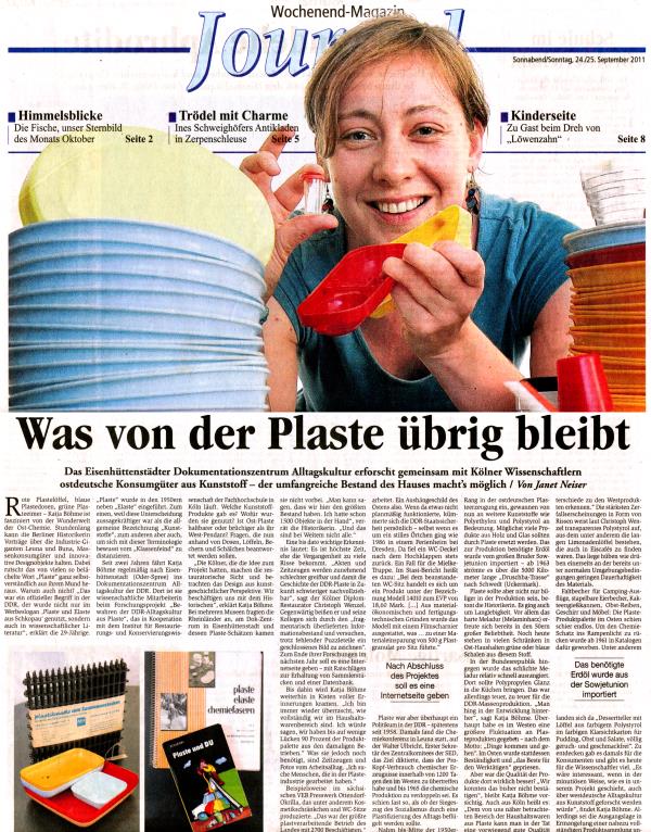 "Rote Plastelöffel, blaue Plastedosen, grüne Plasteeimer – Katja Böhme ist fasziniert von der Wunderwelt der Ost-Chemie. Stundenlang kann die Berliner Historikerin Vorträge über die Industrie-Giganten Leuna und Buna, Massenkonsumgüter und innovative Designobjekte halten. Dabei rutscht das von vielen so belächelte Wort „Plaste“ ganz selbstverständlich aus ihrem Mund heraus. Warum auch nicht? „Das war ein offizieller Begriff in der DDR, der wurde nicht nur im Werbeslogan ,Plaste und Elaste aus Schkopau‘ genutzt, sondern auch in wissenschaftlicher Literatur“, erklärt die 29-Jährige. „Plaste“ wurde in den 1950ern neben „Elaste“ eingeführt. Zum einen, weil diese Unterscheidung aussagekräftiger war als ..." [mehr]
