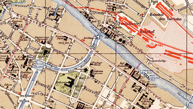 alle Adressen befinden sich aber noch im Umfeld, die am Bethanien- und Elisabeth-Ufer liegen am Südrand des Engelbeckens am Luisenstädtischen Kanal, unweit der Köpenicker Straße (vgl. Berlin-Plan 1876 oben)