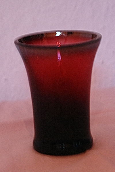 Becher aus massivem Goldrubinglas ("Kunckel-Becher"), hergestellt in Anlehnung an historische Vorbilder von