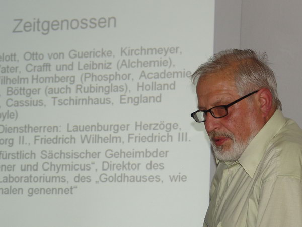 [18.06.10] Dr. Lothar Kuhnert sprach bei unserer Mitgliederversammlung über seine Forschungen und Veröffentlichung zu "Johann Kunckel von Löwenstern (1634-1703) in Berlin-Brandenburg und