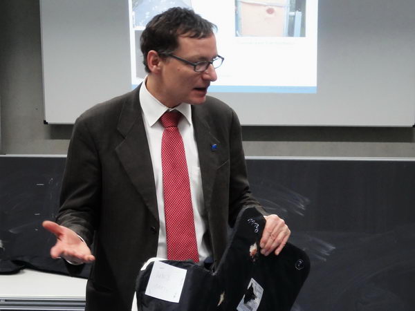 Diese Fasern werden vielfältig als Hochleistungsfasern eingesetzt; herausragende Bespiele sind reiß- und schnittfeste Arbeitsschutzbekleidung, kugelsichere Westen oder feuerfeste Kleidung. Solche Anwendungen erfordern ein verlässliches Schutzniveau. Alterungsprozesse finden sowohl im Gebrauch als bei der Lagerung statt. Im Vortrag wurden Laborverfahren zur Untersuchung von Alterungsprozessen und Prüfmethoden für den Nachweis von Schutzniveaus vorgestellt sowie mit Ergebnissen aktueller Forschungsvorhaben belegt. An mehreren Beispielen zeigte Prof. Herzog u.a. auch die Auswirkungen von Schussversuchen auf
