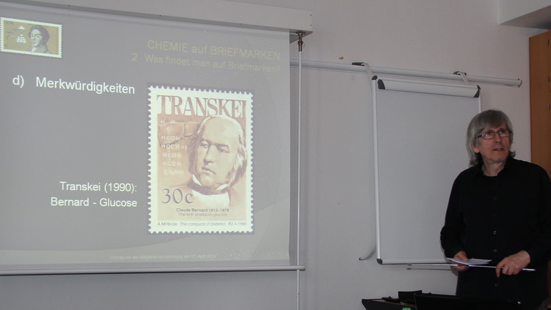 [16.04.] Im öffentlichen Teil unserer Sitzung stellte unser Mitglied Peter Schuler aus Wandlitz "Chemie auf Briefmarken" vor. |