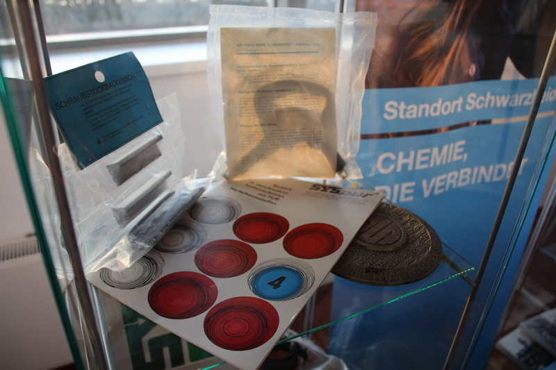 [30.10.] Die Firma Prefere Resins Germany GmbH produziert am Standort Erkner jetzt selbst Formalin, eine wesentliche Grundlage für die Kunststoffproduktion. Die ChemieFreunde Erkner e.V. unterstützten die Veranstaltung zur feierlichen Einweihung der Anlage u.a. mit Informationstafeln zur Geschichte der Produktion in Erkner und einer kleinen Ausstellung zur Designentwicklung für Kunststoff-Geschirr in der DDR: "Plaste von der Burg 1959-1962. Die Plastentwürfe des Instituts für Entwurf und Entwicklung an der Hochschule für industrielle Formgestaltung Halle-Burg Giebichenstein", die der Sammler Richard Anger, Berlin, zusammenstellte. Aus diesem Anlass gab es auch eine neue Bakelite-Madaille mit dem Abbild der neuen Anlage. |