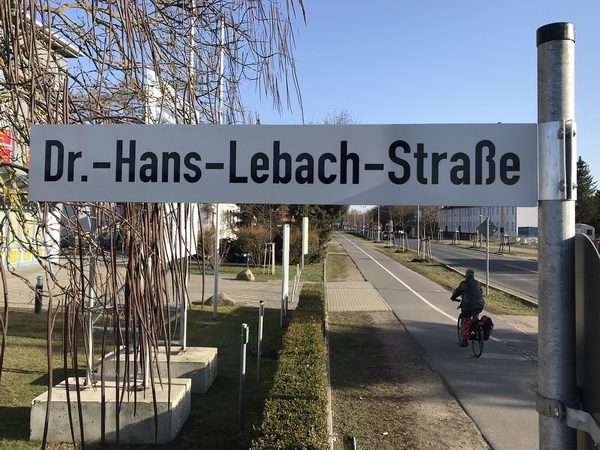 Seit Anfang 2020 hat Erkner eine „Dr.-Hans-Lebach-Straße“! Die bisherige Querstraße der Berliner Straße an der Tankstelle, die etwa das ehemalige Werk II der Bakelite Gesellschaft mbH Erkner (heute Prefere Resins) in Richtung Berlin begrenzt, erhielt den Namen des jüdischen Chemikers und Kunststoff-Erfinders, der seit 1910 einer der ersten Mitarbeiter der Bakelite GmbH war und bis zu seiner Vertreibung 1938 in Erkner wohnte.